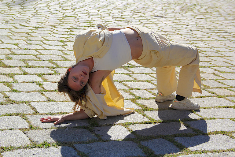 Her practice merges personal memories and imagined realities with collective visions, creating work that unfolds across diverse contexts and spaces. By framing space as both a lived archive and a field of utopian imagination, her performances invite bodies to remember, connect, and explore alternative ways of being together.